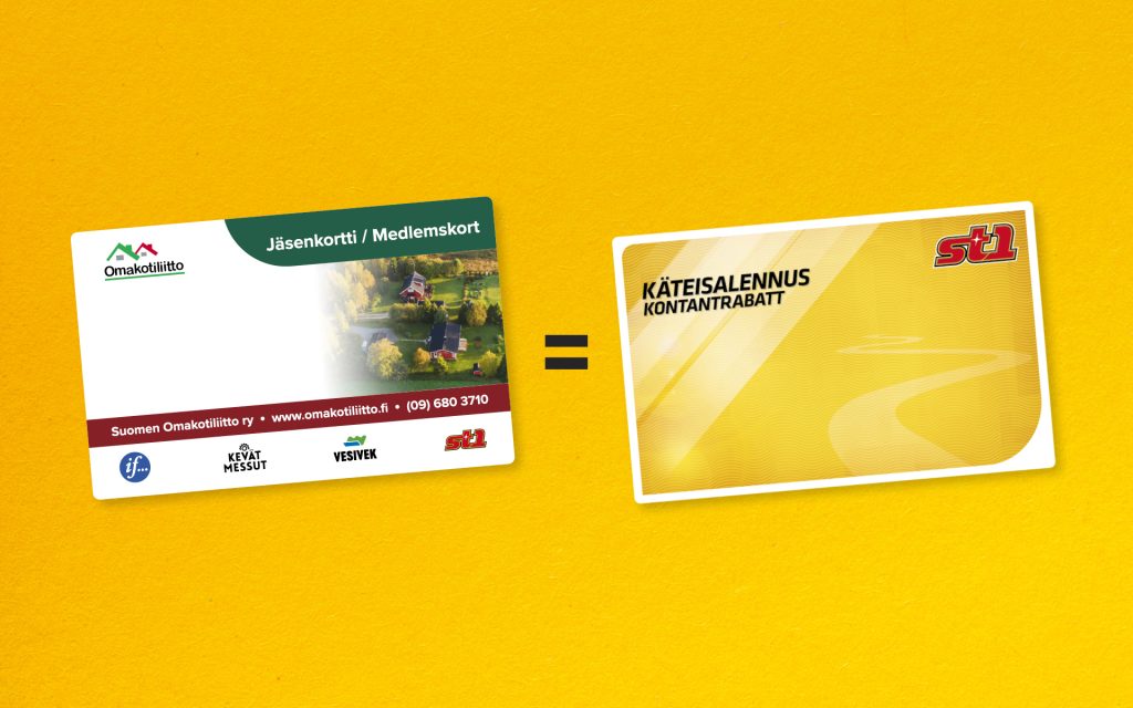 Omakotiliiton jäsenkortti on käyttövalmis St1:n käteisalennuskortti!